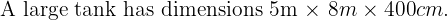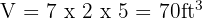 A tank has length = 7 ft, width = 2 ft, height = 5 ft. The volume is: