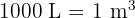 | litre | L | Equal to one cubic decimetre (1 dm³) | 1 L = 1 dm³ = 1,000 cm³ |
