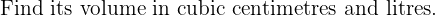 | 1 millilitre (mL) | 1 cm³ | 1 gram (g) |