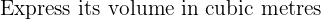 | cubic metre | m³ | A cube 1 m × 1 m × 1 m | 1 m³ = 1,000 litres |