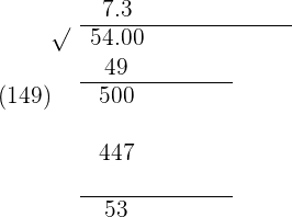 We will stop our calculation here because we were asked to compute the square root of the number 54 up to 1 decimal point. Hence, the square root of 54 up to a single decimal place is 7.3.