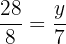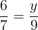 Multiply both sides by 7 to isolate y on the either side of the equation: