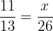 Multiply both sides by 26 to isolate x on the either side of the equation: