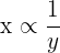If we say that x is inversely proportional to y, then we write this fact in mathematical notation as: