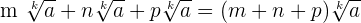 Two radical expressions can be added or subtracted only if they have the same index and the radicand. For instance, consider the following three radicals with same index k and the radicand a: