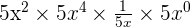 The above expression has same base 5x but different exponents. Before using exponent product rule, we will first make the exponent negative exponent positive by shifting it to the numerator like this: