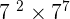 The above expression has same base 7 but different exponents. We will employ the exponent product rule here which says that when two exponents with the same base are multiplied, we can add their exponents.