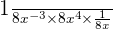 The above expression has same base 8x but different exponents. Before using exponent product rule, we will first make the exponent negative exponent positive by shifting it to the numerator like this: