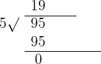 The quotient 19 is the minutes and the remainder 0 will be multiplied by 60 and the resulting number will be added to seconds.