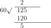 The remainder 5 represents minutes and the quotient 2 reflects hours. Hence, the final answer is: