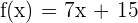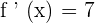 Since the above function is in the slope intercept form , hence the slope of the above function is 7. The derivative of the function is also equal to its slope and can be written as follows:
