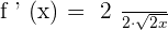 Step 1 - Find the derivative of the term inside the root function. In the above example, the term inside the root function is , hence the derivative of the function