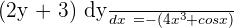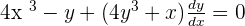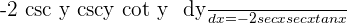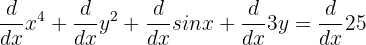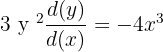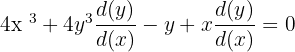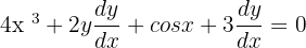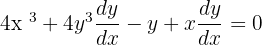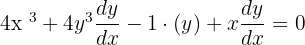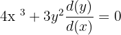 Since there was only a constant on right hand side of the equation, hence we have set the whole equation equal to 0. Besides differentiating each element in the function, the derivative of y is also multiplied by