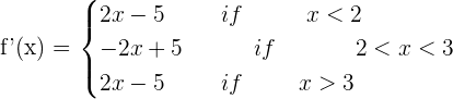 Find the point in the function y = |x ² − 5x + 6| where it has no derivative. Justify the result by representing it graphically.