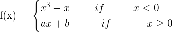A differentiable function has to be continuous. In this case the function is not continuous for x = 0, that is to say, there are no values for a and b which make the function continuous.