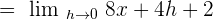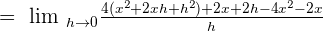Put h = 0 in the above expression to get the limit of the original function: