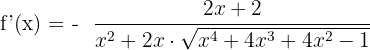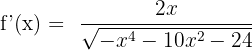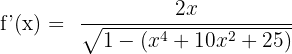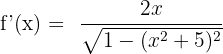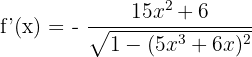 First, we will identify u. Here, . The derivative of u is u' = 2x. Substitute these values of u and u' in the below formula to get the derivative of this arcsine function: