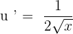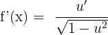 Substitute these values of u and u' in the below formula to get the derivative of this arcsine function: