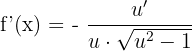 Substitute these values of u and u' in the below formula of finding the derivative of an arccosecant function: