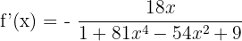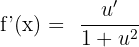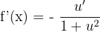 Substitute these values of u and u' in the formula of finding the derivative of arc cotangent function: