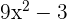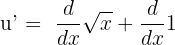 is equal to 18x and the derivative of the constant 3 is equal to 0. Hence, the value of u' = 18x.
