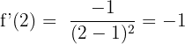 = \lim_ {h \rightarrow 0} \frac{\frac{-h}{(x + h - 1) (x - 1)}} {h} = \lim_{h \rightarrow 0} \frac{-1}{(x + h - 1) (x - 1)} = -\frac{1}{(x - 1)^2}