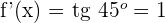 Given the equation f(x) = 2x² − 3x − 1, find the coordinates of the point on the curve in which the tangent forms a 45° angle with the x-axis .