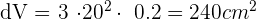 Find the change in the volume of a cube of with edges of 20 centimeters, when each edge increases by 0.2 cm in length..