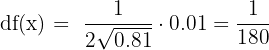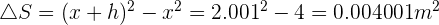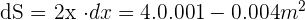 A square has a side of 2 m. Determine the increase in area of the square when its sides increase by 1 milimeter. Calculate the error made when using differentials rather than increases.