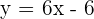 , where 6 is the slope and -6 is the y-intercept of the line.