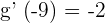 Now by looking at the function we can see that if we plug in the original function, we will get the answer -9.