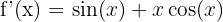 Step 1 - First Derivative - Use the Product Rule. Let u = x and v = sin(x).