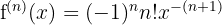 The pattern shows that the coefficient corresponds to the factorial of n (n!), and the sign alternates. The power of x is always -(n+1).