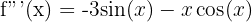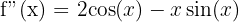 Step 2 - Second Derivative - Differentiate the result. The first term is simple; the second term (x cos(x)) requires the product rule again.