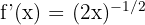 Step 1 - First Derivative: rewrite the function using a fractional exponent