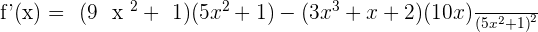 . To find the derivative of such functions, you will need the help of quotient rule and here is how you use quotient rule: