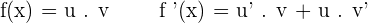 Let's try to understand what is going on here. The answer will consist of two terms, the first function (indicated by "u") is derivated and then multiplied with the second function (indicated by "v"). In the second term, the first function is multiplied with the derivated form of the second function. The key point to note is that one function will be derivated while the other function isn't and both functions are multiplied. If can switch the terms as well, for example, we wrote it like this