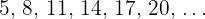 Find three numbers in an arithmetic sequence whose sum is 15 and the sum of their squares is 83.