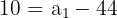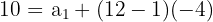 In an arithmetic progression, the common difference is -4 and the 12th term is 10. Calculate the first term,