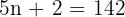 Now, set the formula equal to 142 and solve for n: