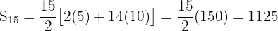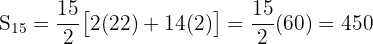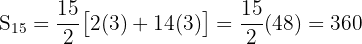 The first term of an arithmetic sequence is 3 and the fifteenth term is 45. Find the common difference and the sum of the first fifteen terms.