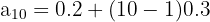 Find the 10th term of the arithmetic sequence: 0.2, 0.5, 0.8, 1.1...