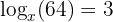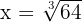 To find x, calculate the cube root of 64.