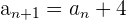 Now, instead of adding four, we multiply each nth number and 4. Let’s take a look at the first four numbers of this sequence starting with the number 3.