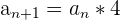 As you can see, from one number to the next, we have 4 multiplied. When you want to find out whether you have a geometric series or not, simply divide each successive number by each other.