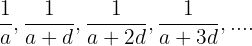 When we take reciprocal of each term in the arithmetic sequence, a new sequence is formed which is known as a harmonic sequence. The general notation of a harmonic sequence is given below: