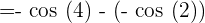 Hence, our definite integral is - cos 4 + cos 2. Now, we will substitute this value in the equation below like this: