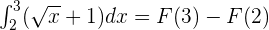 Substitute 3 and 2 in the antiderivative of the function like this: