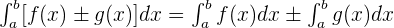The definite integral of the sum or difference of the functions is equal to the sum or difference of integrals. Mathematically, we can write it as: