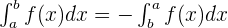 The sign of the value of the definite integral changes when the limits of integration are interchanged. Mathematically, this property can be written as: